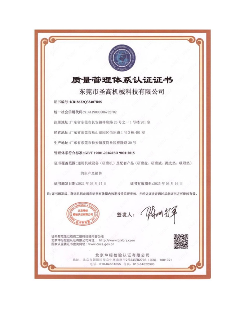 圣高的主要產品有單面研磨拋光機、雙面研磨拋光機、噴射拋光機、樹脂銅盤、樹脂鐵盤、鉆石研磨墊、拋光墊、研磨液、拋光液、精細研磨砂輪、噴射拋光用彈性磨料、造粒金剛石磨料等。